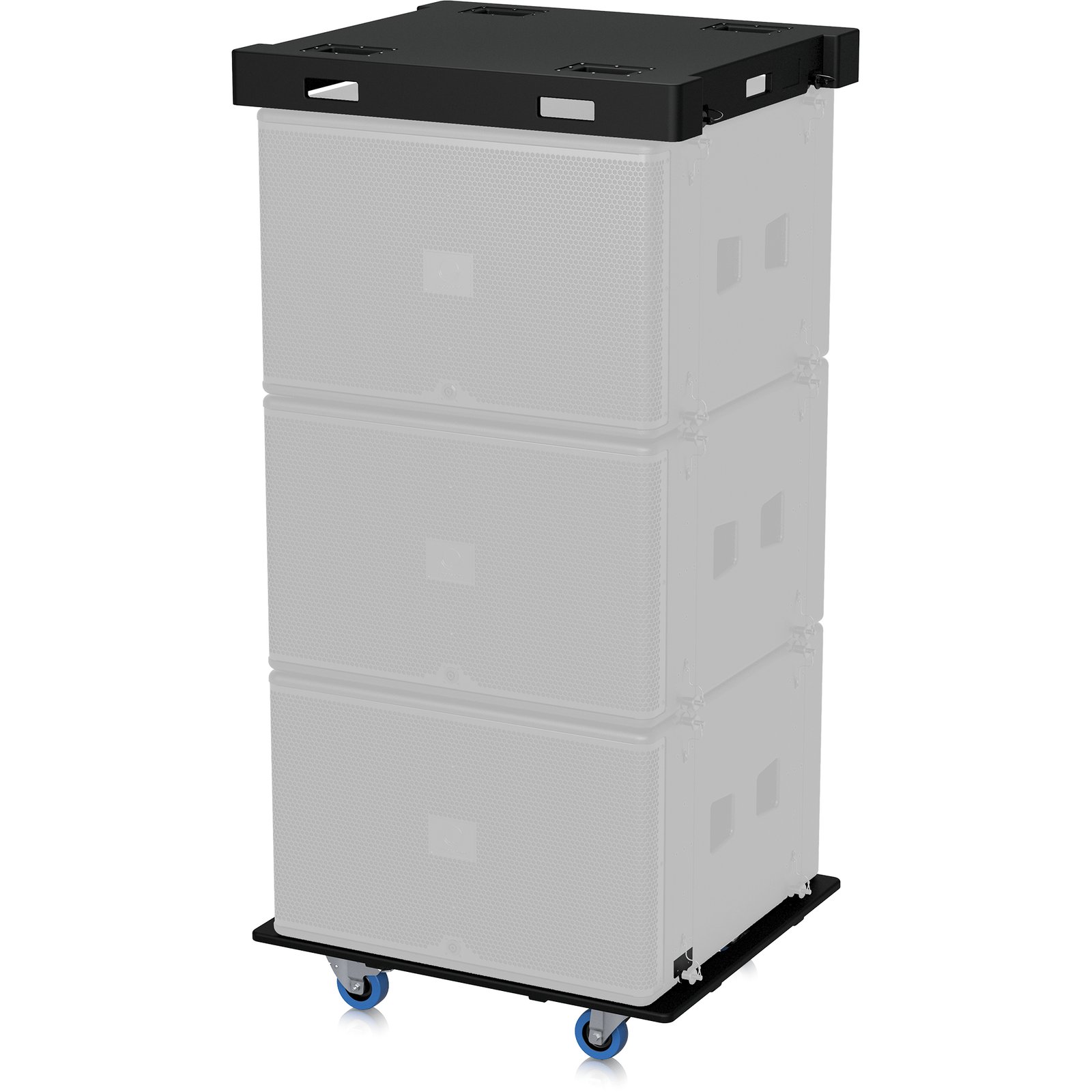 MS215-VT — это специально созданная колесная платформа для сабвуфера Turbosound MS215, с помощью которой можно легко перевозить 2 или 3 таких корпуса с различными конфигурациями басовых массивов.